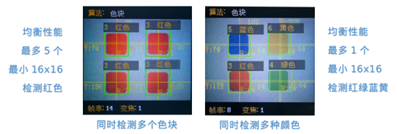 | 2 | 色块检测 | 检测图像中是否包含一个或多个指定颜色的色块,返回其坐标和尺寸,可以通过设置色块尺寸用于滤除干扰 |