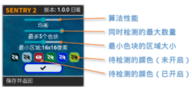 | 10 | 运动物体 | 判断图像中是否有移动区域,如果有,返回该区域的坐标和大小,传感器需处于静止状态,自身不可移动 |