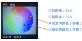 | 1 | 颜色识别 | 设置1~25个识别区域,返回每个区域中的颜色信息,如R,G,B值及分类标签 |